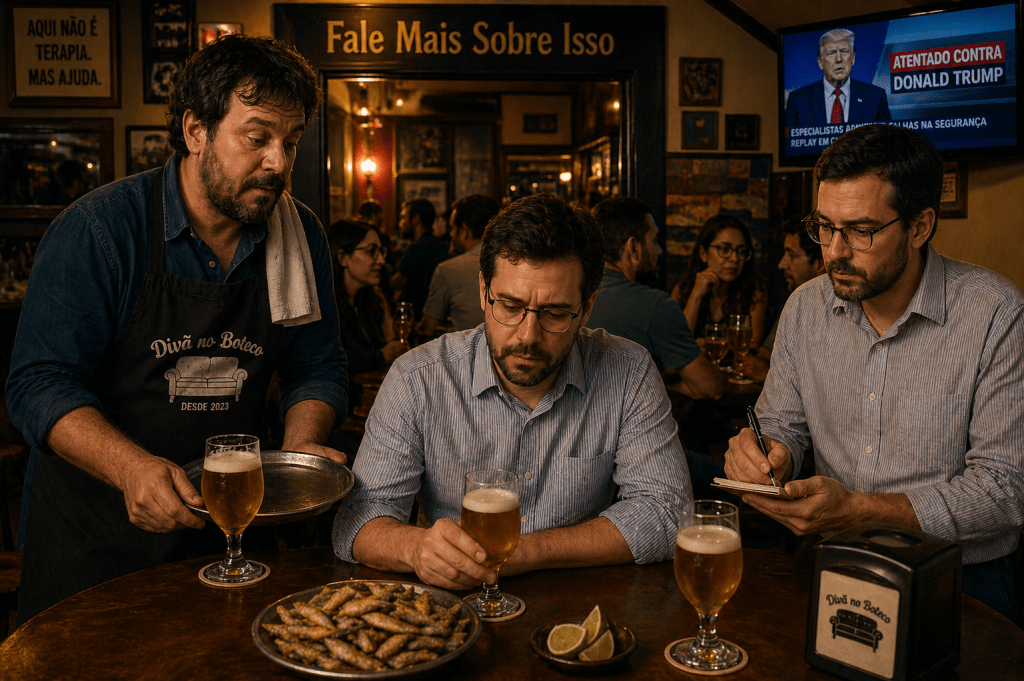 O “Fale Mais Sobre Isso” estava cheio, mas fazia um silêncio estranho — desses que só aparecem quando todo mundo resolveu falar alto demais dentro da própria cabeça.